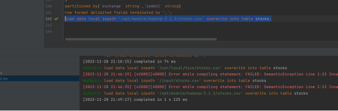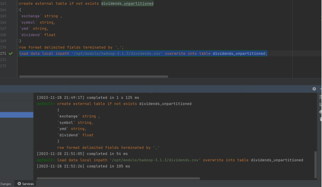 (4) 创建一个未分区的外部表dividends_unpartitioned,并从dividends.csv向其中导入数据,表结构如表14-13所示。
