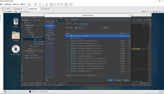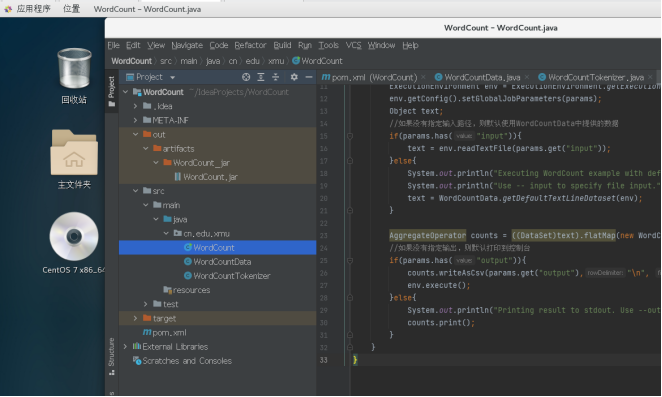 在Linux系统中安装IntelliJ IDEA,然后使用IntelliJ IDEA工具开发WordCount程序,并打包成JAR文件,提交到Flink中运行。