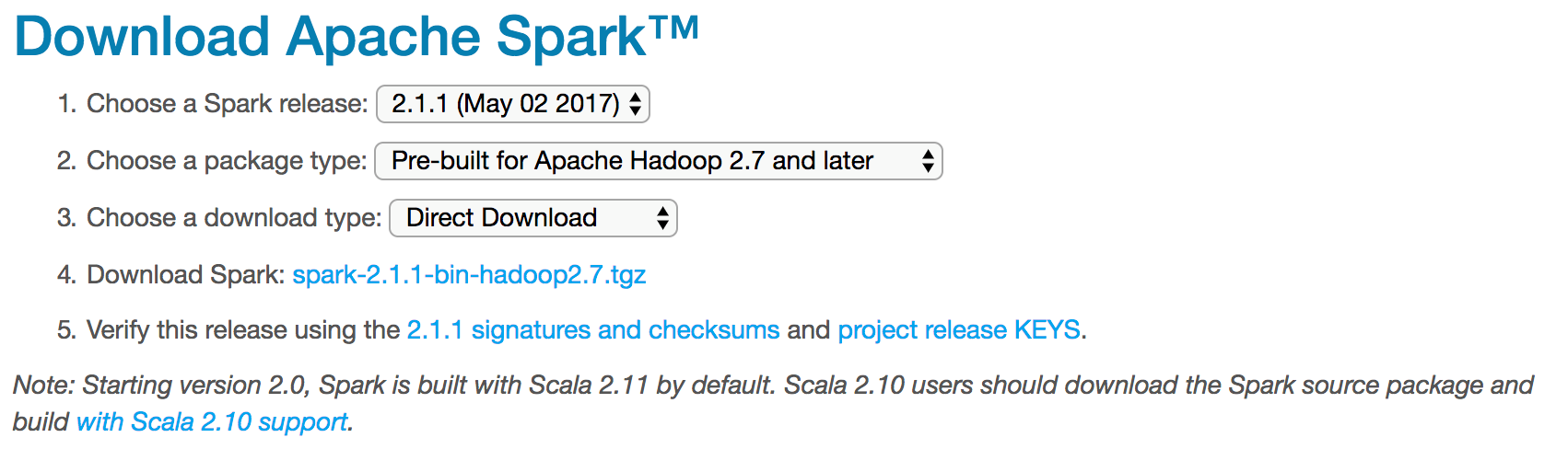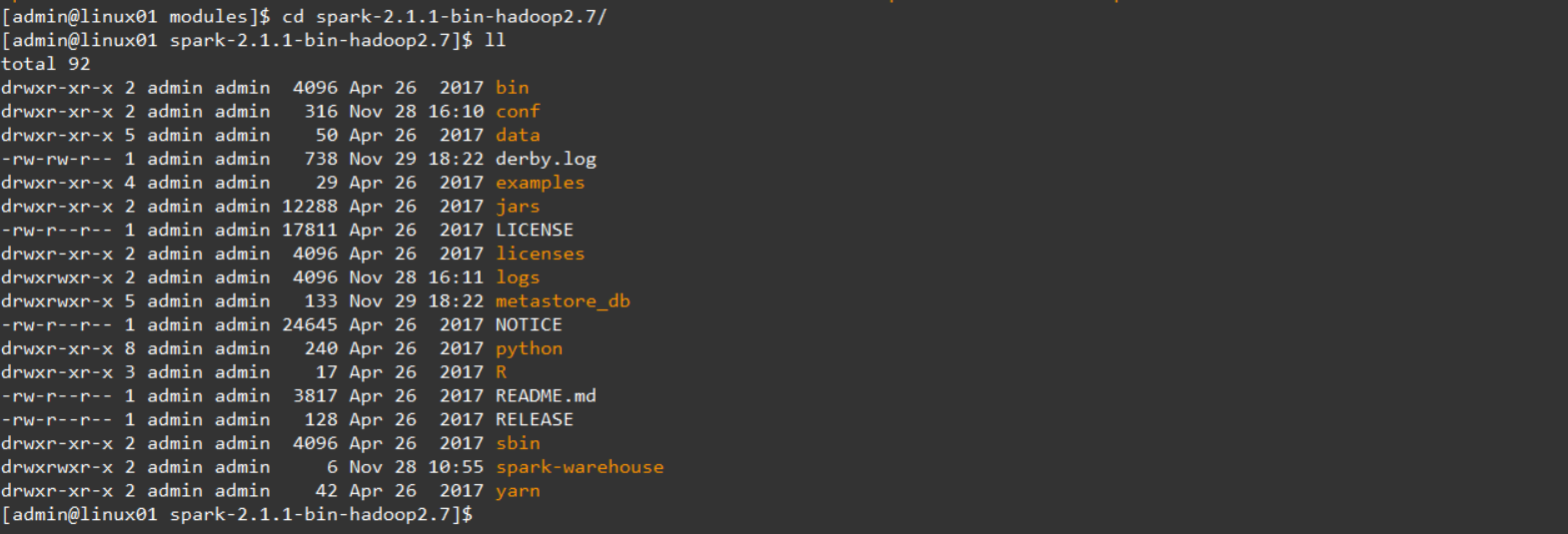 tar -xf spark-2.1.1-bin-hadoop2.7.tgz -C /opt/modules