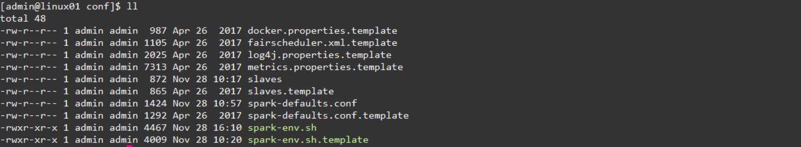 cd /home/bigdata/hadoop/spark-2.1.1-bin-hadoop2.7/conf