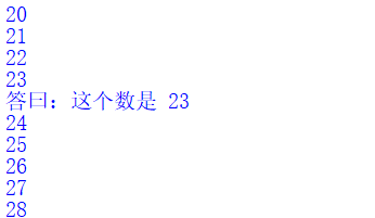 1 print("今有物不知其数,三三数之剩二,五五数之剩三,七七数之剩二,问几何?\n") 2 for number in range(100): 3 print(number) 4 if number%3== 2 and number%5 == 3 and number%7 == 2: 5 print("答曰:这个数是",number)