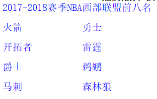 实例07:分两列显示2017-2018赛季NBA西部联盟前八名球队