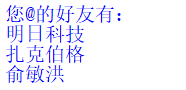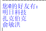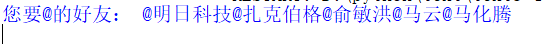 str1 = '@明日科技 @扎克伯克 @俞敏洪' list1 = str1.split(' ') print('您@的好友有:') for item in list1: print(item[1: ])