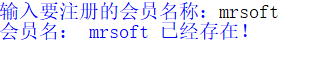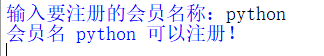 username_1 = '|Mingri|mr|mingrisoft|WGH|MRSoft|' username_2 = username_1.lower() ragname_1 = input('输入要注册的会员名称:') ragname_2 = '|' + ragname_1.lower()+'|' if ragname_2 in username_2: print('会员名:',ragname_1,'已经存在!') else: print('会员名',ragname_1,'可以注册!')