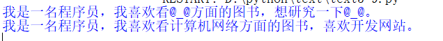 import re pattern = r'(黑客)|(抓包)|(监听)|(Trojan)' about = '我是一名程序员,我喜欢看黑客方面的图书,想研究一下Trojan。' sub = re.sub(pattern,'@_@',about) print(sub) about = '我是一名程序员,我喜欢看计算机网络方面的图书,喜欢开发网站。' sub = re.sub(pattern,'@_@',about) print(sub)