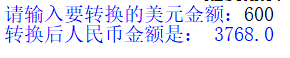 def change(dollar): RMB = dollar*6.28 return RMB dollar = float(input("请输入要转换的美元金额:")) print("转换后人民币金额是:",change(dollar))