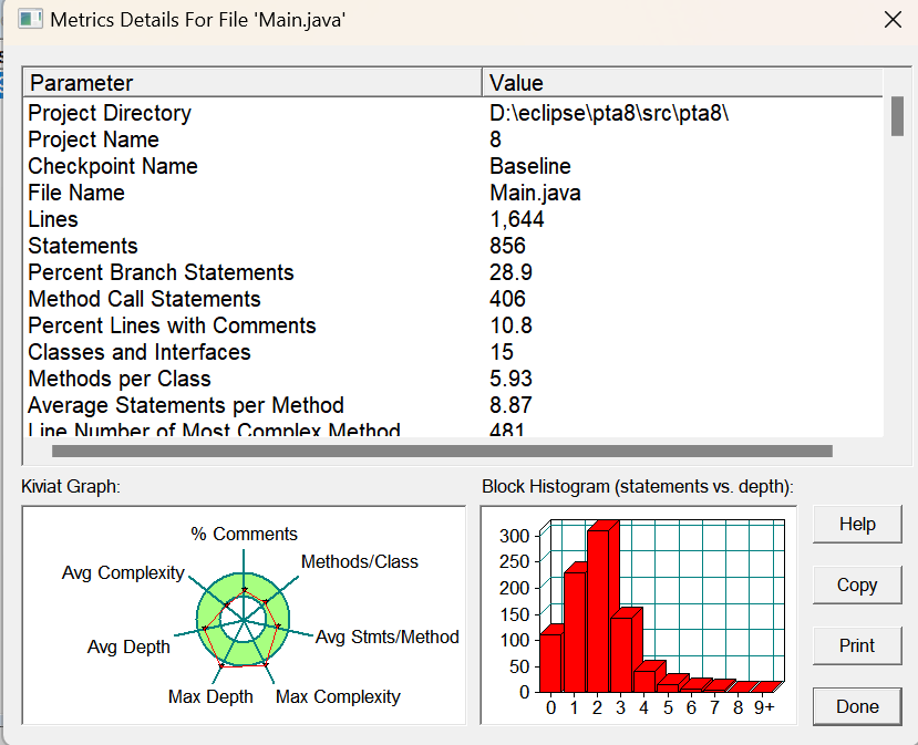 这些指标表明:代码结构相对简单,平均复杂度较低,方法普遍简短精炼注释充足,有利于代码维护类的划分合理,符合单一职责原则。