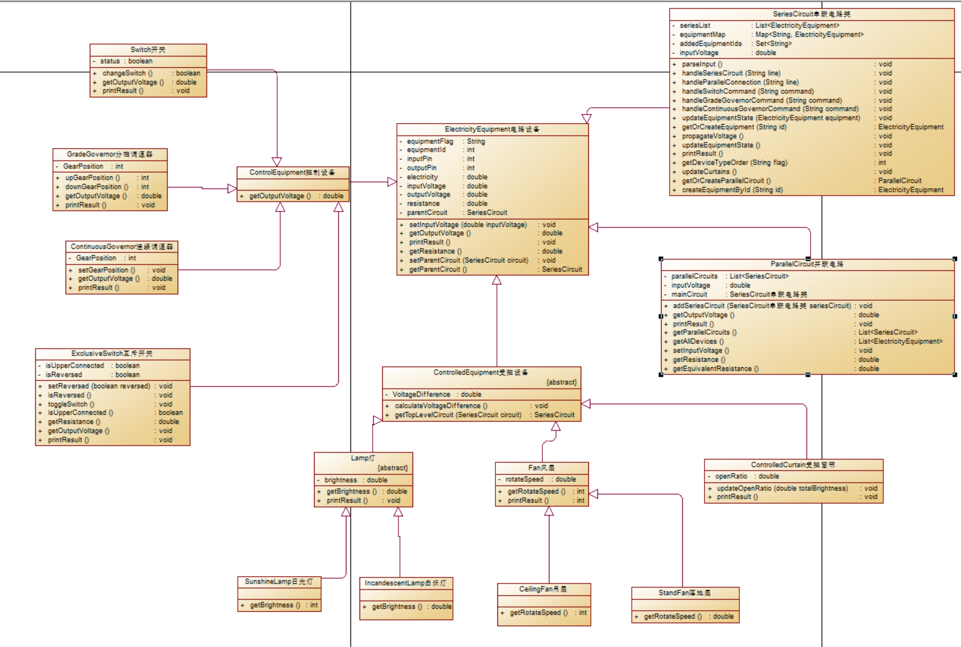 面向对象编程能力得到提升,深入理解了继承和多态的实际应用,如设备基类和各类具体设备的实现,掌握了抽象类的设计技巧,如ControlEquipment和ControlledEquipment,学会了接口设计原则,确保了代码的可扩展性,复杂算法的实现,学习了处理复杂的递归结构如多层嵌套的串并联电路,提高了对边界条件的处理能力,如短路检测、电流限制等,学会了如何设计清晰的类层次结构,了解了模块化编程的重要性,理解了代码复用的便利性,设计好程序的结构才能顺利开发出程序。