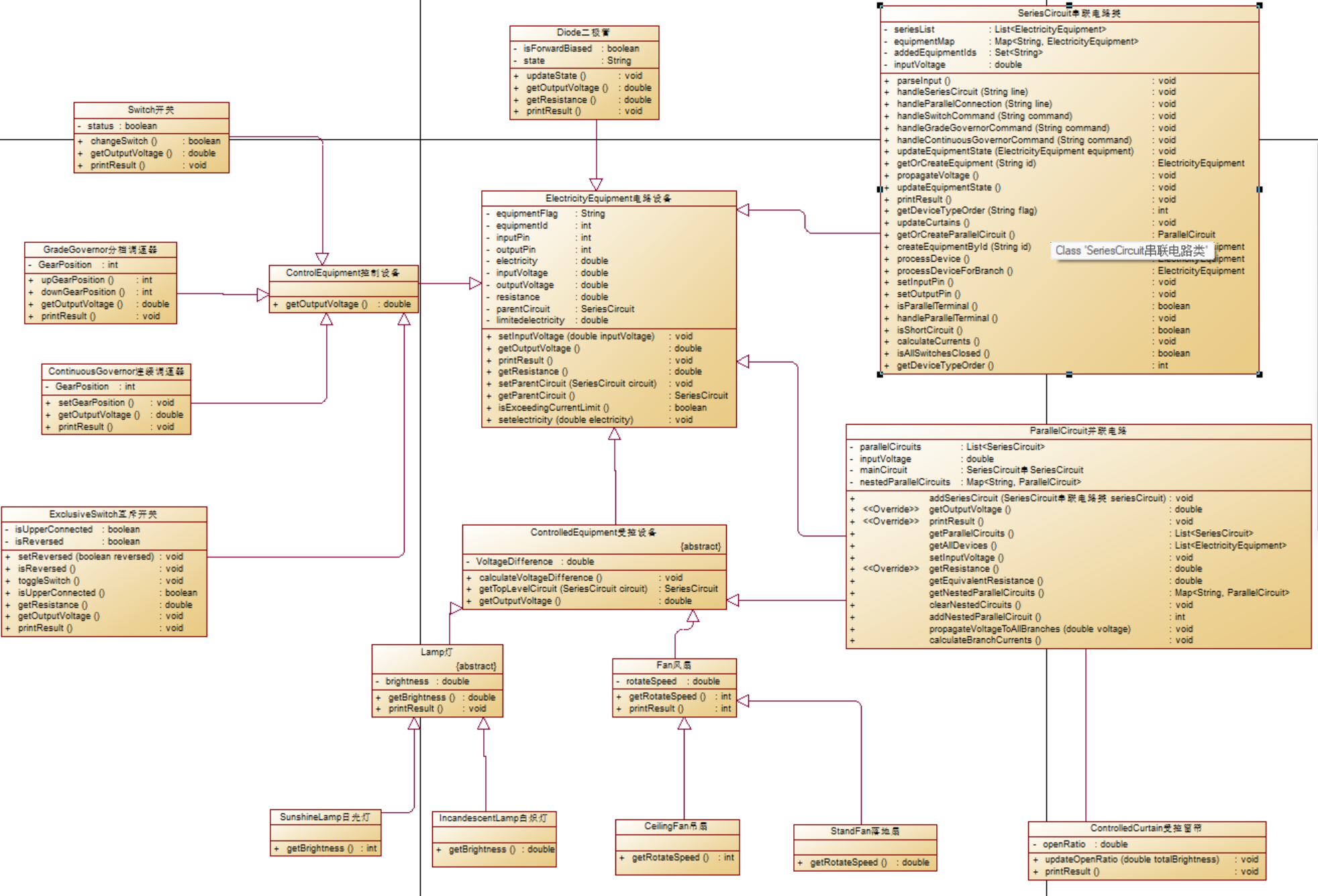 public SeriesCircuit getParentCircuit():获取设备所属的父级串联电路