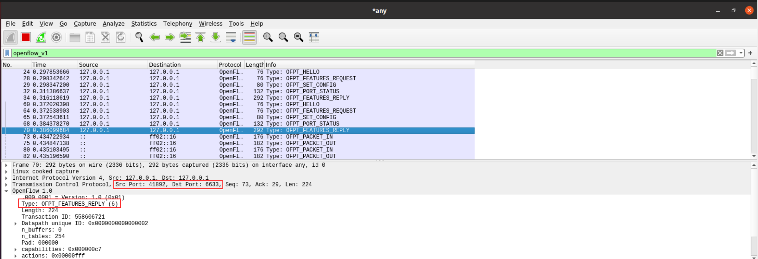 3.回答问题:交换机与控制器建立通信时是使用TCP协议还是UDP协议?