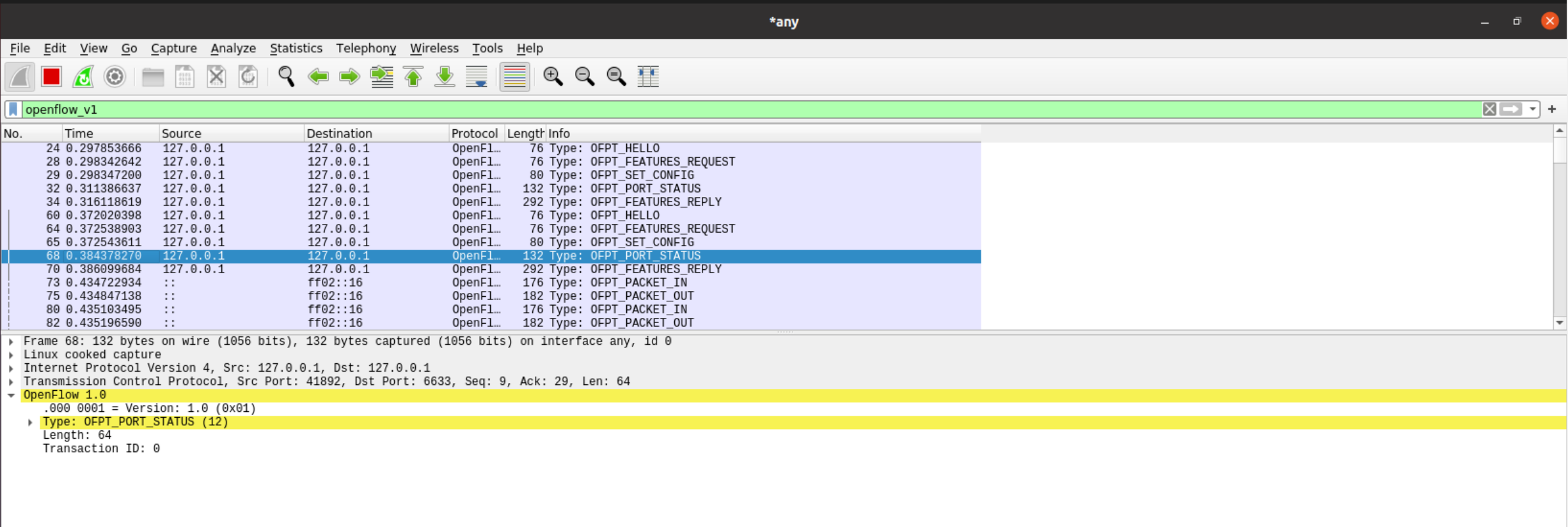 将抓包基础要求第2步的抓包结果对照OpenFlow源码,了解OpenFlow主要消息类型对应的数据结构定义。
