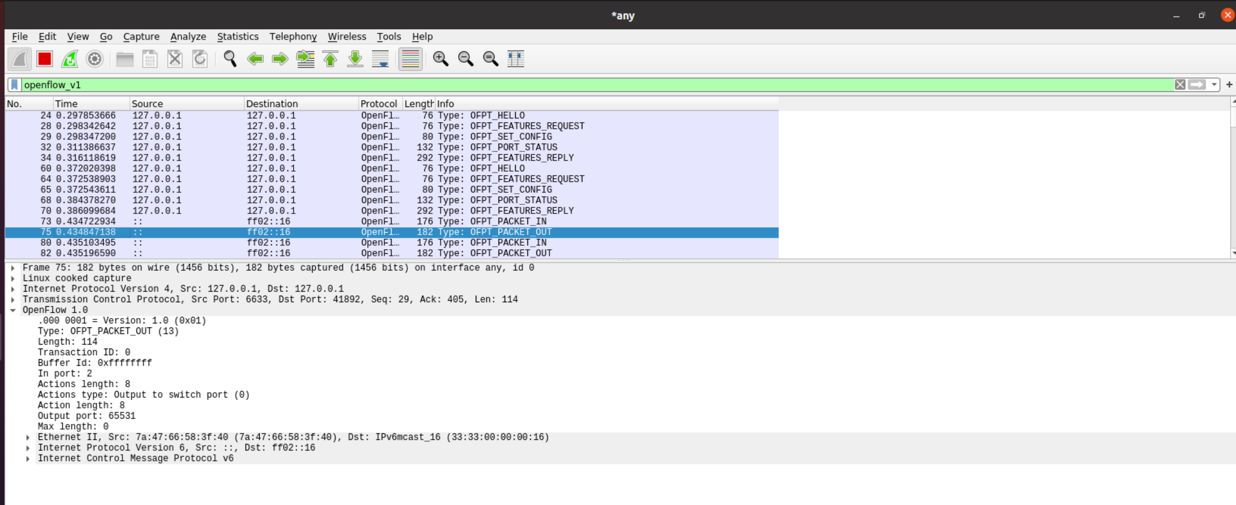 解决方法:将协议更改为openflow-v6就会发现HELLO数据包