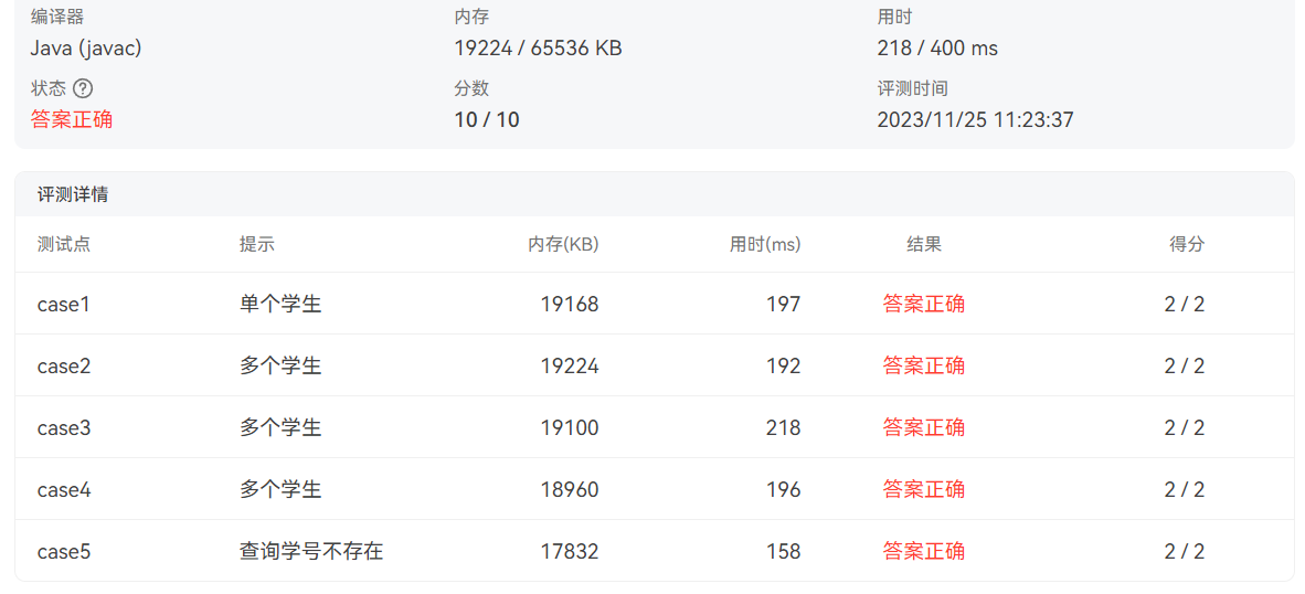 输出查询到的学生信息格式:学号+英文空格+姓名+英文空格+成绩