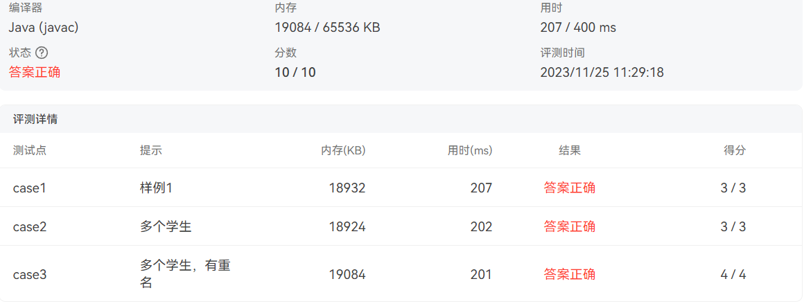 输入多个学生的成绩信息,每个学生的成绩信息格式:学号+英文空格+姓名+英文空格+成绩