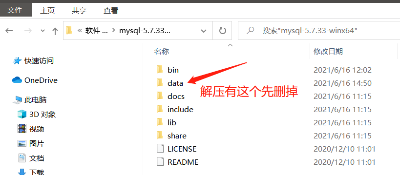 解压后的文件夹,在没有安装前只有以下文件夹(如果有data就删掉):