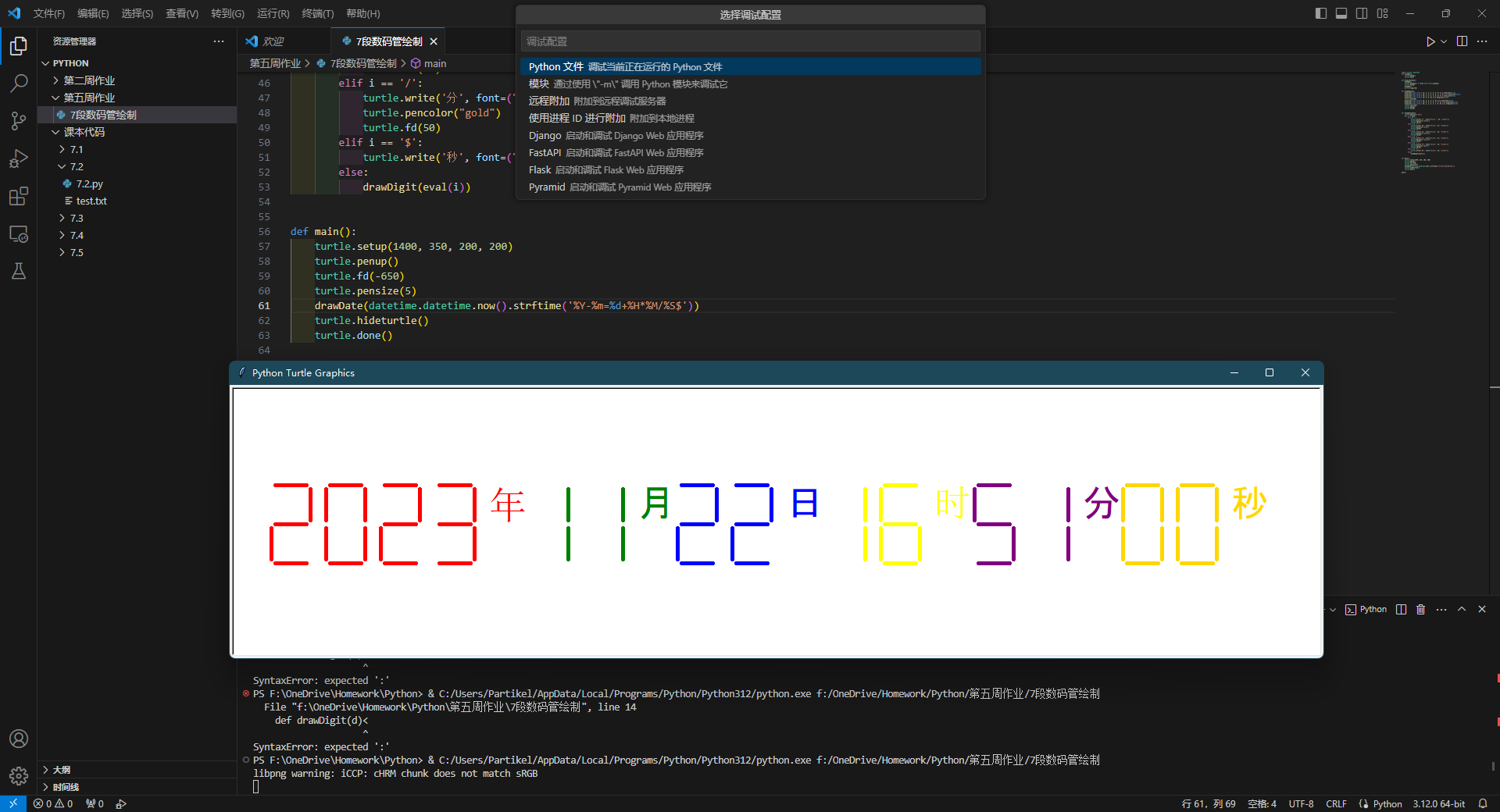 turtle.write('秒', font=("Arial", 36, "normal"))
