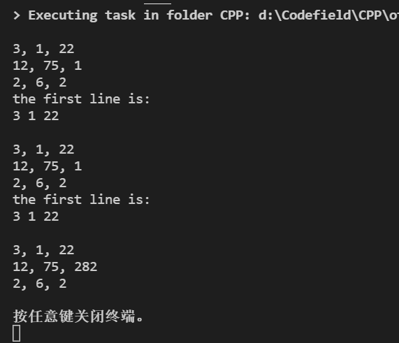 cout << "the first line is: " << endl;