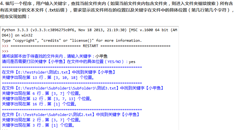 4 编写一个程序,用户输入关键字,查找当前文件夹内(如果当前文件夹内包含文件夹,则进入文件夹继续搜索)所有含有该关键字的文本文件(.txt),