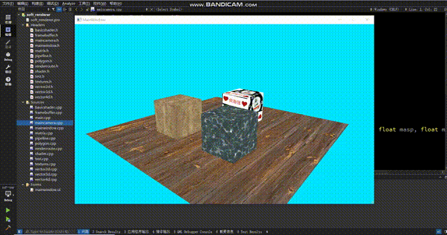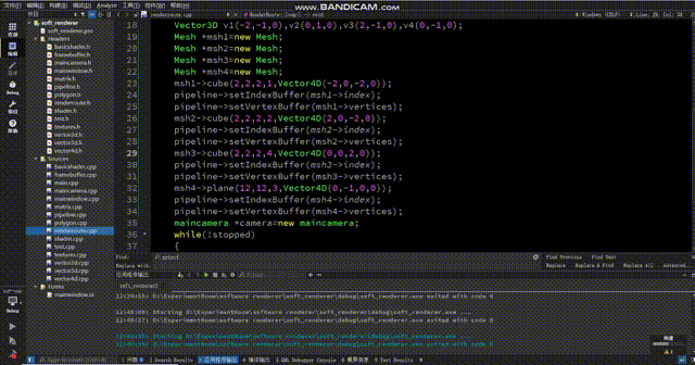 好了,我们的二维转三维的工作就完成了。接下来我们可以在renderRoute中自由定义一个mesh,装一下自己喜欢的几何体形状,然后在while循环中每帧调用相机绕y轴旋转的函数: