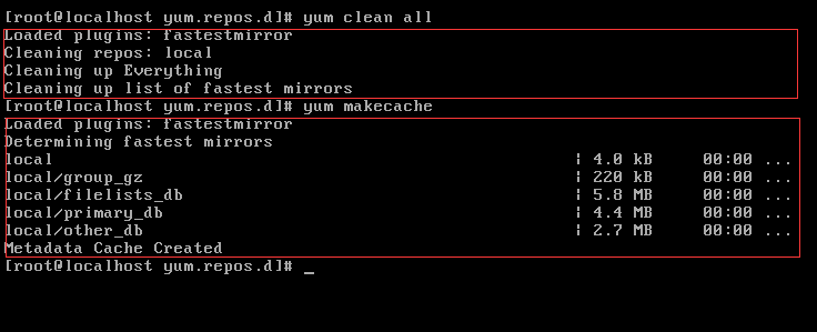 mv 原本存在于yum.repos.d目录下的所有repo文件 bk/ #由于是本地环境,所以系统自带的repo用不上