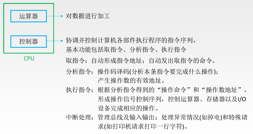 计算机的工作过程:CPU对存储在主存中指令序列(称为程序)和数据进行取指执行操作