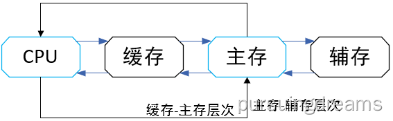 缓存-主存层次:解决CPU和主存速度不匹配问题。