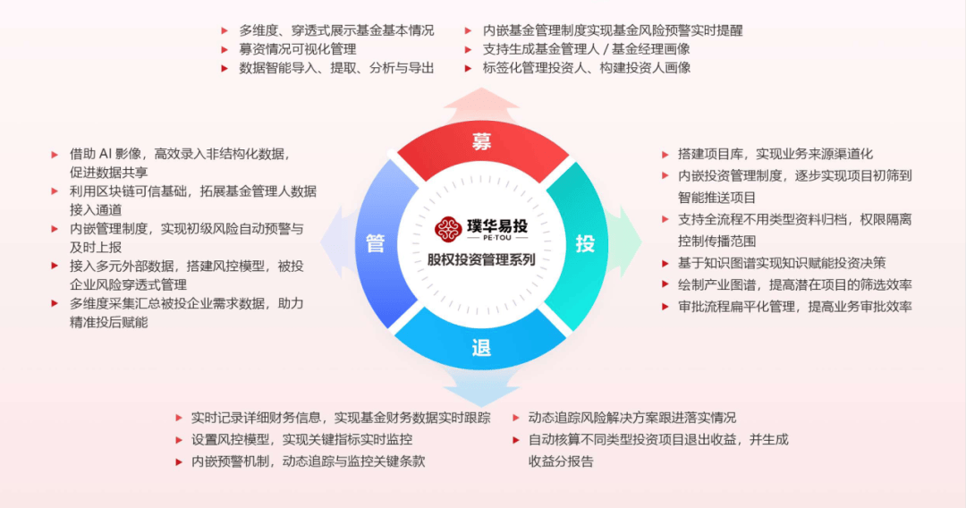 流程线上化:固化投资业务流程,从立项、审批到投后管理全程线上操作,提升业务执行效率;