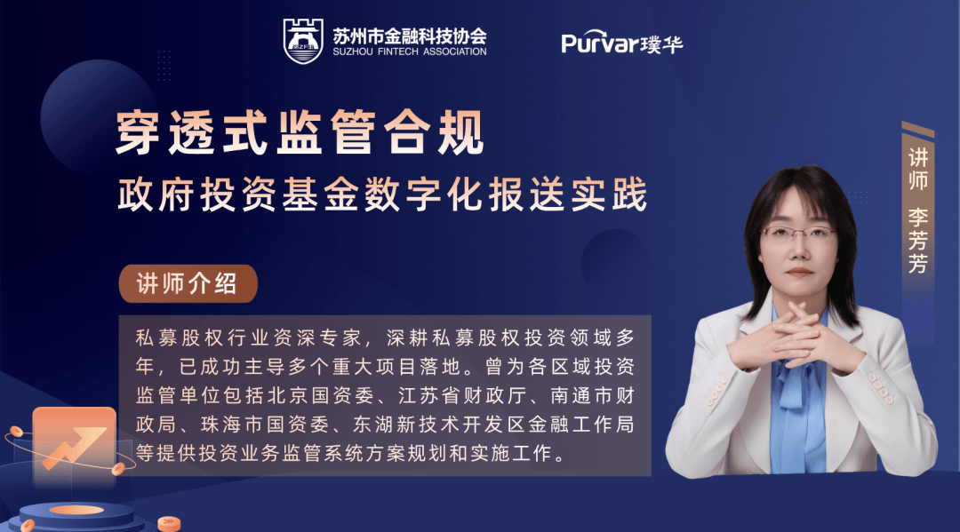 2025年9月12日,由苏州市金融科技协会指导、璞华科技有限公司主办的第 4 期线上公开课 ——“穿透式监管合规:政府投资基金数字化报送实践” 顺利收官。本次公开课聚焦政府投资基金监管痛点,结合政策要求与实践案例,为各级财政、国资监管单位及基金管理人提供了数字化监管解决方案,吸引了众多行业从业者参与。