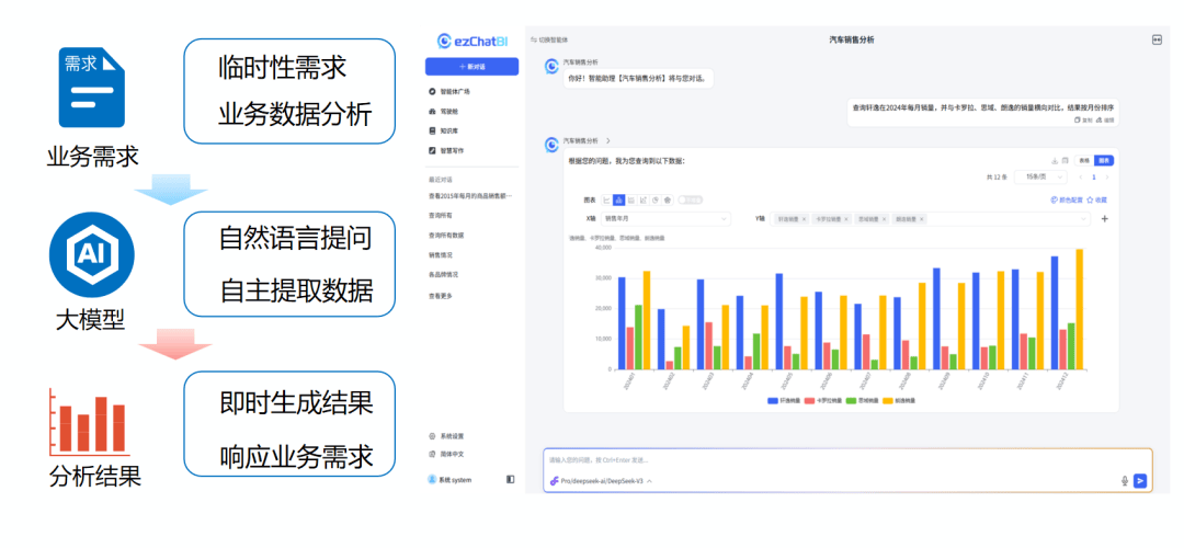 新版本内置了轻量化AI模型,能够自动识别数据结构,智能解析Excel/CSV文件,彻底改变了传统繁琐的手动配置流程。系统采用智能体协同架构,集成DeepSeek、Qwen等主流大模型,实现了从意图理解、任务规划与调度的全流程自动化。