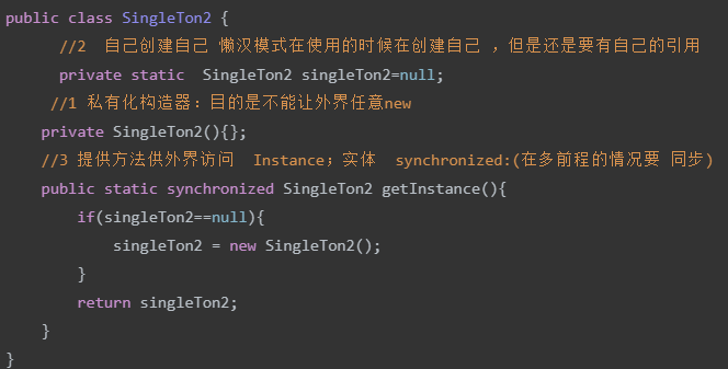 1、单例类只有一个实例对象(构造方法私有化)