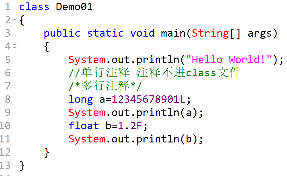 //单行注释 注释不进class文件