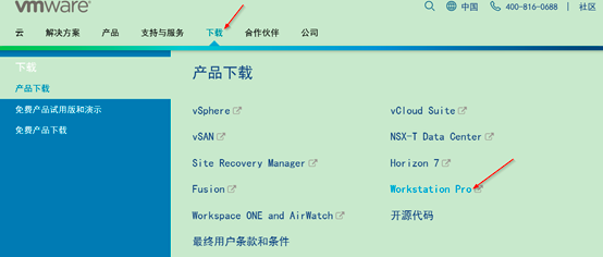 1.Vmware的下载,进入Vmware官网,点击下载然后点击Workstation Pro 选择下载的版本。