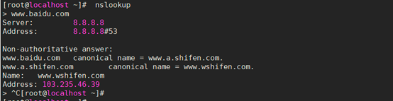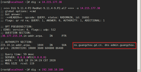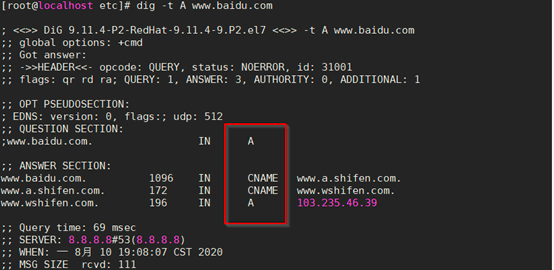 - dig –t A www.baidu.com,可以查看出地址。(正向解析)