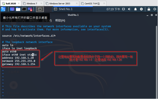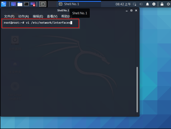 4.回到终端输入,vi /etc/network/interfaces ,进入网卡配置,输入以下内容。