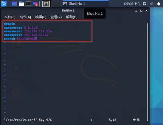 5.输入 vi /etc/resolv.conf ,打开dns配置,添加以下内容。