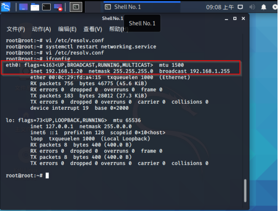 7.再输入ifconfig,发现有了刚才配的ip地址。