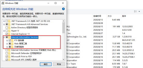 3.找到IIS下ftp功能,把勾都打上,点击确定。