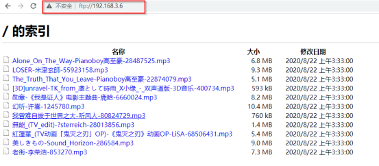 9.打开浏览器,输入ftp://ip,可以进行点击下载了。