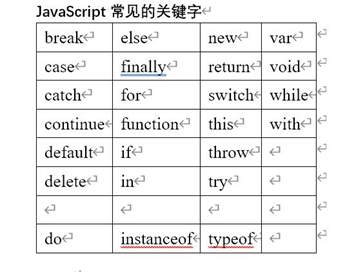 JavaScript常见的关键字: