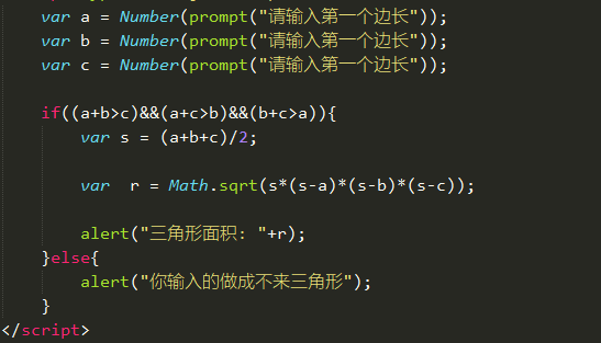 需求说明:比如输出三个边不能形成三角形的时候,直接输出“您输入的三个边不能组成三角形”;如果输入的没有问题,输出三角形的面积