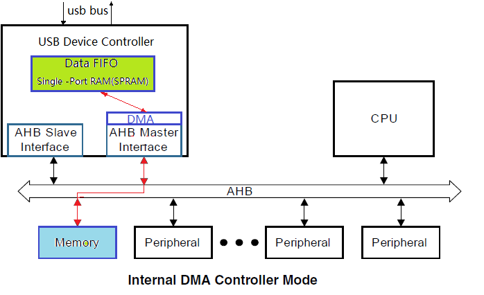 - UDC 接收时,数据先从 USB 物理线路接收到 UDC 的内部 FIFO 当中,然后再从 FIFO 拷贝到 内存 Memory 当中。
