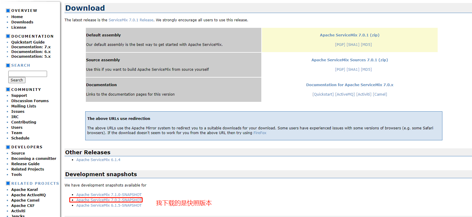 1.下载servicemix,http://servicemix.apache.org/downloads.html(前提jdk和maven已存在)