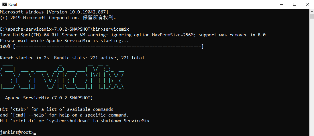 3.启动servicemix,切换到bin目录下,输入servicemix或者servicemix.bat
