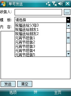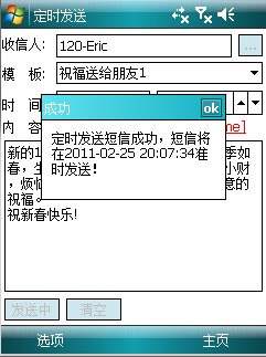 2011-02-25 20:16 pxeric 阅读(595) 评论(2) 收藏 举报又是一个因为自己懒而开发的小软件,虽说手机上有群发的功能,但并不是很强大,我所想要的功能也没有。该软件所实现的功能主要有单号码发送、多号群发、分组发送、定时发送、短信模板。采用SQLite数据库存储定时发送的信息和短信的模板。
