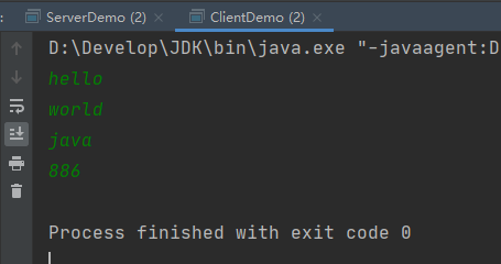 public class ClientDemo { public static void main(String[] args) throws IOException { //创建客户端Socket对象 Socket s= new Socket("192.168.50.76",12345); //数据来自于键盘录入,知道输入的数据是886,发送数据结束 BufferedReader br = new BufferedReader(new InputStreamReader(System.in)); //封装输出流对象 BufferedWriter bw = new BufferedWriter(new OutputStreamWriter(s.getOutputStream())); String line; while ((line= br.readLine())!=null){ if ("886".equals(line)){ break; } //发送数据 // OutputStream os = s.getOutputStream(); // os.write(line.getBytes()); bw.write(line); bw.newLine(); bw.flush(); } //释放资源 s.close(); } }