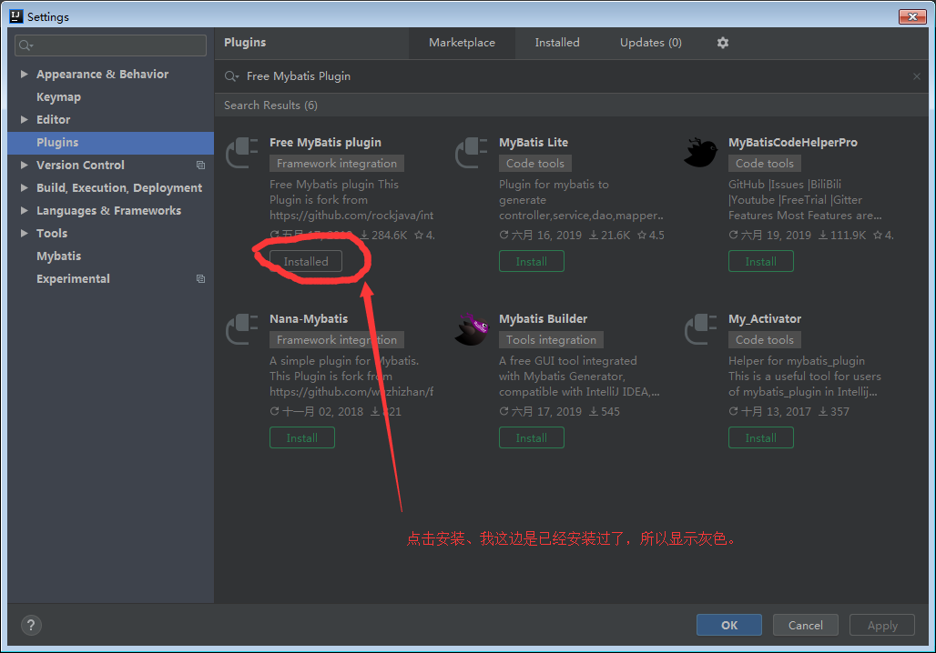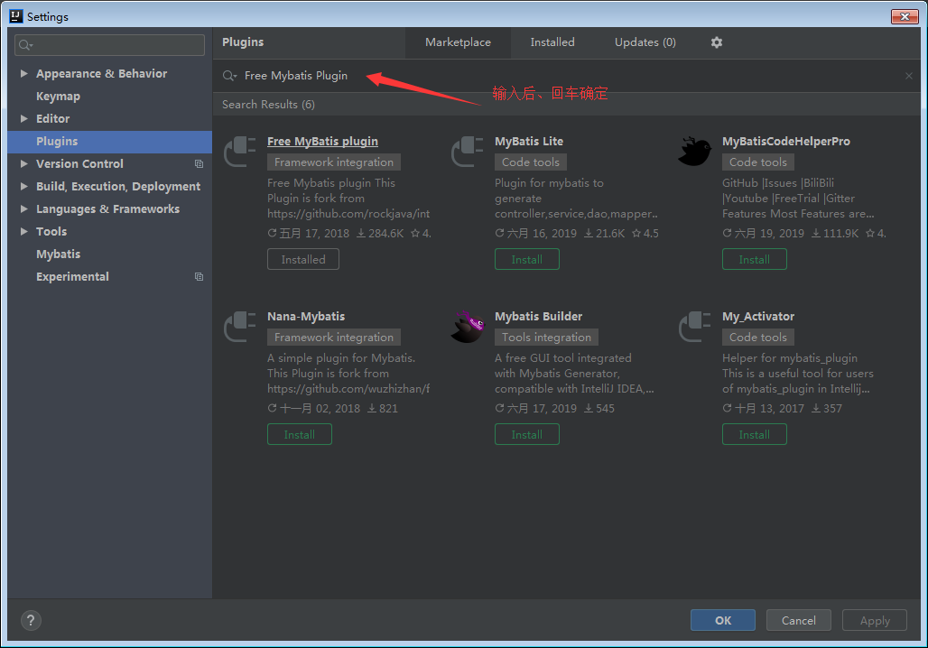 三、输入框搜索Free Mybatis Plugin==》回车确定