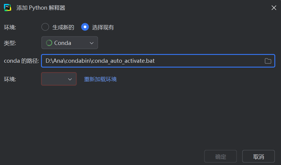 设置中搜索Python解释器,点击"添加新的解释器",选择添加本地解释器,选择现有。找到conda路径,生成新的环境即可,配置过程如下: