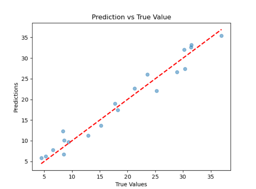 可以看到预测结果散点基本位于标准线两侧,距离标准线较近,经判断可以初步达到预测目的。