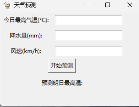 在此界面中依次输入相关数据,点击“开始预测”按钮即可开始预测第二日最高气温
