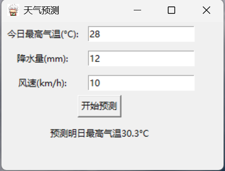 result_label.config(text=f"预测明日最高气温{prediction.item():.1f}°C")